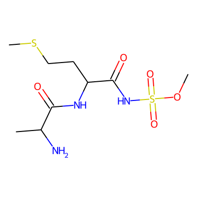 COS(=O)(=O)NC(=O)C(CCSC)NC(=O)C(C)N| HBA: | 8 | RingCount: | 0 |
