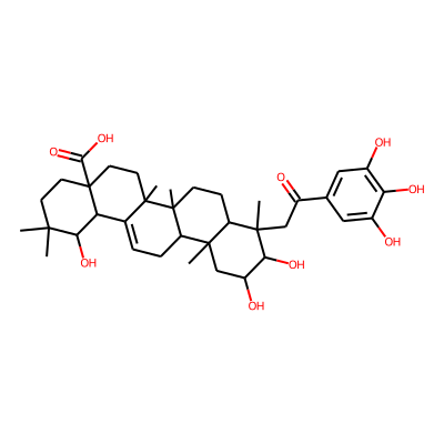 CC1(C)CCC2(C(=O)O)CCC3(C)C(=CCC4C5(C)CC(O)C(O)C(C)(CC(=O)c6cc(O)c(O)c(O)c6)C5CCC43C)C2C1O| HBA: | 9 | RingCount: | 6 |