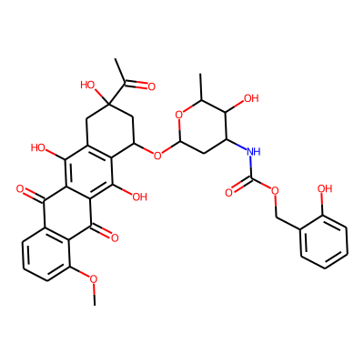 COc1cccc2c1C(=O)c1c(O)c3c(c(O)c1C2=O)CC(O)(C(C)=O)CC3OC1CC(NC(=O)OCc2ccccc2O)C(O)C(C)O1| HBA: | 14 | RingCount: | 6 |