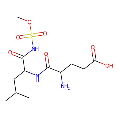 COS(=O)(=O)NC(=O)C(CC(C)C)NC(=O)C(N)CCC(=O)O| HBA: | 10 | RingCount: | 0 |