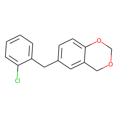 Clc1ccccc1Cc1ccc2c(c1)COCO2| HBA: | 2 | RingCount: | 3 |