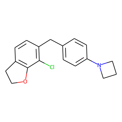 Clc1c(Cc2ccc(N3CCC3)cc2)ccc2c1OCC2| HBA: | 2 | RingCount: | 4 |