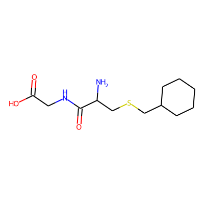 NC(CSCC1CCCCC1)C(=O)NCC(=O)O| HBA: | 5 | RingCount: | 1 |