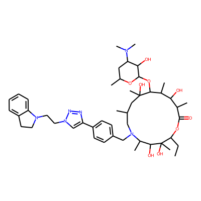 CCC1OC(=O)C(C)C(O)C(C)C(OC2OC(C)CC(N(C)C)C2O)C(C)(O)CC(C)CN(Cc2ccc(-c3cn(CCN4CCc5ccccc54)nn3)cc2)C(C)C(O)C1(C)O| HBA: | 15 | RingCount: | 6 |