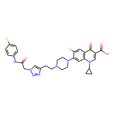 O=C(Cn1cc(CCN2CCN(c3cc4c(cc3F)c(=O)c(C(=O)O)cn4C3CC3)CC2)nn1)Nc1ccc(S)cc1Sugarmoiety: