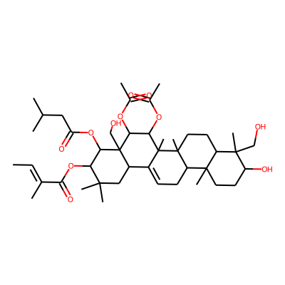 CC=C(C)C(=O)OC1C(OC(=O)CC(C)C)C2(CO)C(CC1(C)C)C1=CCC3C4(C)CCC(O)C(C)(CO)C4CCC3(C)C1(C)C(OC(C)=O)C2OC(C)=O| HBA: | 11 | RingCount: | 5 |