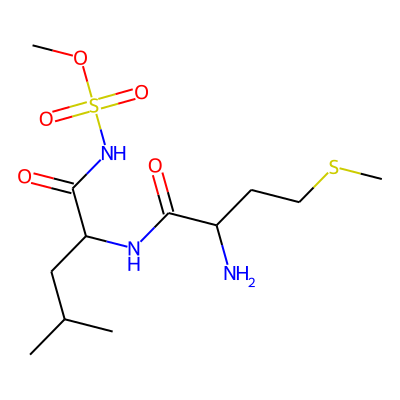 COS(=O)(=O)NC(=O)C(CC(C)C)NC(=O)C(N)CCSC| HBA: | 8 | RingCount: | 0 |