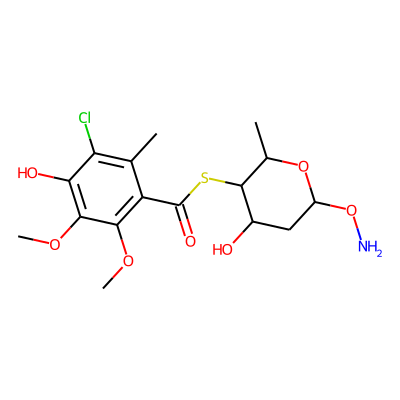 CCNC1COC(O)CC1OC.COc1c(O)c(Cl)c(C)c(C(=O)SC2C(O)CC(ON)OC2C)c1OCSugarmoiety: