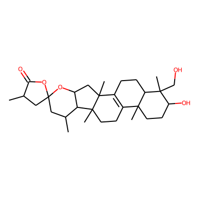 CC1CC2(CC(C)C3C(CC4(C)C5=C(CCC34C)C3(C)CCC(O)C(C)(CO)C3CC5)O2)OC1=O| HBA: | 5 | RingCount: | 6 |