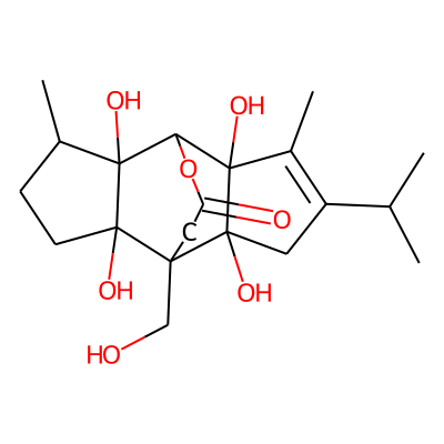 CC1=C(C(C)C)CC2(O)C1(O)C1OC(=O)CC2(CO)C2(O)CCC(C)C12O| HBA: | 7 | RingCount: | 5 |