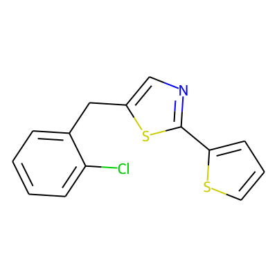 Clc1ccccc1Cc1cnc(-c2cccs2)s1| HBA: | 1 | RingCount: | 3 |