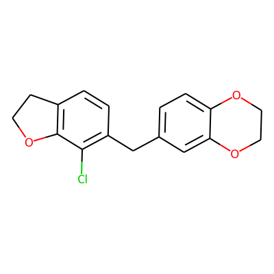 Clc1c(Cc2ccc3c(c2)OCCO3)ccc2c1OCC2| HBA: | 3 | RingCount: | 4 |