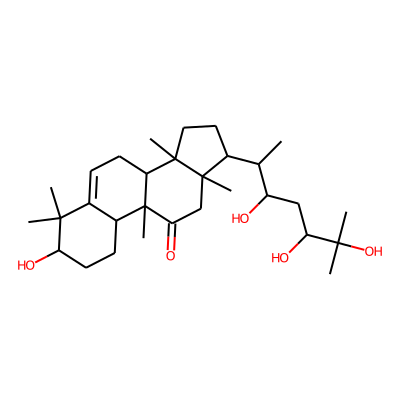 CC(C(O)CC(O)C(C)(C)O)C1CCC2(C)C3CC=C4C(CCC(O)C4(C)C)C3(C)C(=O)CC12C| HBA: | 5 | RingCount: | 4 |
