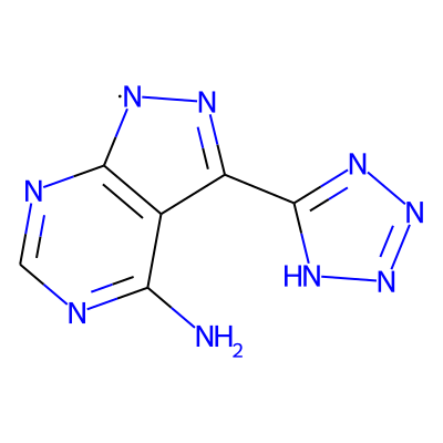 Nc1ncnc2c1C(c1nnn[nH]1)=N[N]2| HBA: | 9 | RingCount: | 3 |
