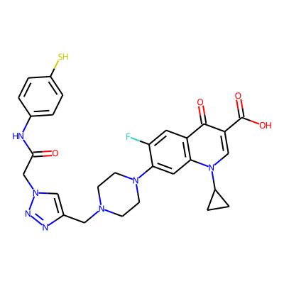 O=C(Cn1cc(CN2CCN(c3cc4c(cc3F)c(=O)c(C(=O)O)cn4C3CC3)CC2)nn1)Nc1ccc(S)cc1Sugarmoiety: