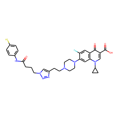 O=C(CCCn1cc(CCN2CCN(c3cc4c(cc3F)c(=O)c(C(=O)O)cn4C3CC3)CC2)nn1)Nc1ccc(S)cc1Sugarmoiety: