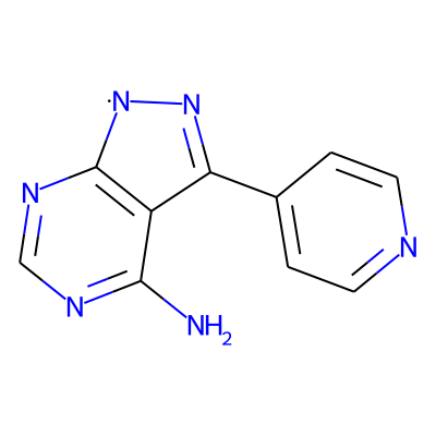 Nc1ncnc2c1C(c1ccncc1)=N[N]2| HBA: | 6 | RingCount: | 3 |