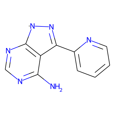 Nc1ncnc2c1C(c1ccccn1)=N[N]2| HBA: | 6 | RingCount: | 3 |