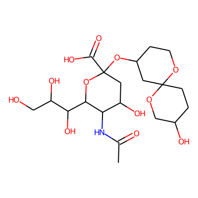 CC(=O)NC1C(O)CC(OC2CCOC3(CCC(O)CO3)C2)(C(=O)O)OC1C(O)C(O)CO| HBA: | 13 | RingCount: | 3 |