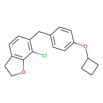 OC[C@@H]1O[C@H](c2cc(Cc3ccc(OC4CCC4)cc3)c(Cl)c3c2CCO3)[C@H](O)[C@H](O)[C@H]1OAglycone: