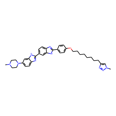 CN1CCN(c2ccc3nc(-c4ccc5nc(-c6ccc(OCCCCCCCCc7cn(C)nn7)cc6)[nH]c5c4)[nH]c3c2)CC1| HBA: | 10 | RingCount: | 7 |