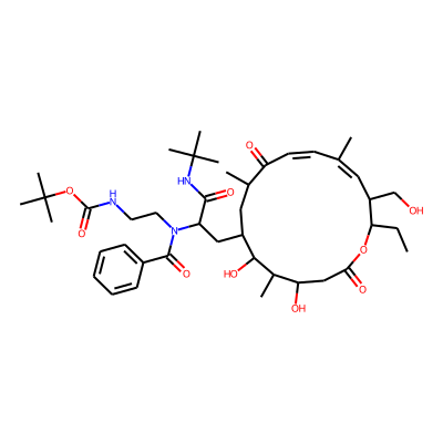 CCC1OC(=O)CC(O)C(C)C(O)C(CC(C(=O)NC(C)(C)C)N(CCNC(=O)OC(C)(C)C)C(=O)c2ccccc2)CC(C)C(=O)C=CC(C)=CC1CO| HBA: | 13 | RingCount: | 2 |