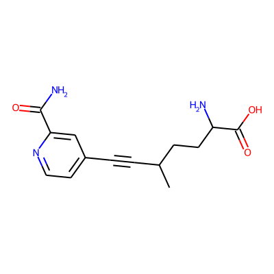 CC(C#Cc1ccnc(C(N)=O)c1)CCC(N)C(=O)O| HBA: | 6 | RingCount: | 1 |