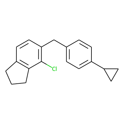OC[C@@H]1O[C@H](c2cc(Cc3ccc(C4CC4)cc3)c(Cl)c3c2CCC3)[C@H](O)[C@H](O)[C@H]1OAglycone:
