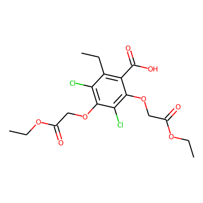 CCOC(=O)COc1c(Cl)c(CC)c(C(=O)O)c(OCC(=O)OCC)c1Cl| HBA: | 8 | RingCount: | 1 |