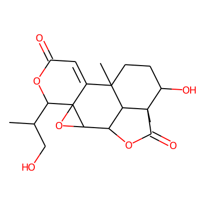CC(CO)C1OC(=O)C=C2C3(C)CCC(O)C4(C)C(=O)OC(C34)C3OC213| HBA: | 7 | RingCount: | 5 |