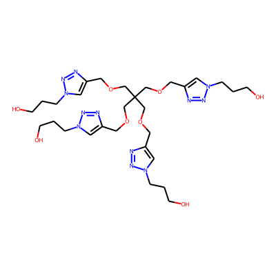 OCCCn1cc(COCC(COCc2cn(CCCO)nn2)(COCc2cn(CCCO)nn2)COCc2cn(CCCO)nn2)nn1| HBA: | 20 | RingCount: | 4 |