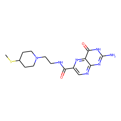 CSC1CCN(CCNC(=O)c2cnc3nc(N)[nH]c(=O)c3n2)CC1| HBA: | 9 | RingCount: | 3 |