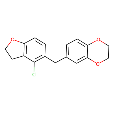 OC[C@@H]1O[C@H](c2cc(Cc3ccc4c(c3)OCCO4)c(Cl)c3c2OCC3)[C@H](O)[C@H](O)[C@H]1OAglycone: