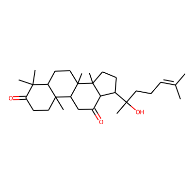 CC(C)=CCCC(C)(O)C1CCC2(C)C1C(=O)CC1C3(C)CCC(=O)C(C)(C)C3CCC12C| HBA: | 3 | RingCount: | 4 |