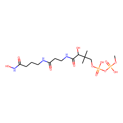 COP(=O)(O)OP(=O)(O)OCC(C)(C)C(O)C(=O)NCCC(=O)NCCCC(=O)NO| HBA: | 15 | RingCount: | 0 |