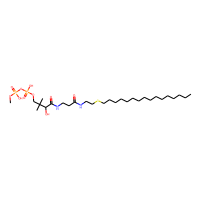 CCCCCCCCCCCCCCCCSCCNC(=O)CCNC(=O)C(O)C(C)(C)COP(=O)(O)OP(=O)(O)OC| HBA: | 12 | RingCount: | 0 |