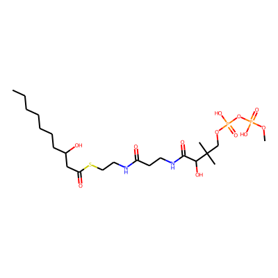 CCCCCCCC(O)CC(=O)SCCNC(=O)CCNC(=O)C(O)C(C)(C)COP(=O)(O)OP(=O)(O)OC| HBA: | 14 | RingCount: | 0 |