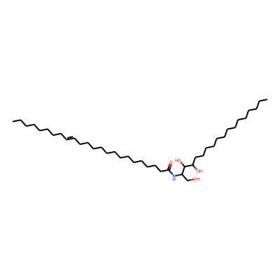 CCCCCCCCC=CCCCCCCCCCCCCCC(=O)NC(CO)C(O)C(O)CCCCCCCCCCCCCC| HBA: | 5 | RingCount: | 0 |