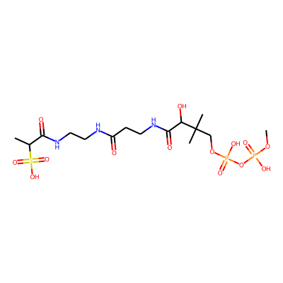 COP(=O)(O)OP(=O)(O)OCC(C)(C)C(O)C(=O)NCCC(=O)NCCNC(=O)C(C)S(=O)(=O)O| HBA: | 17 | RingCount: | 0 |