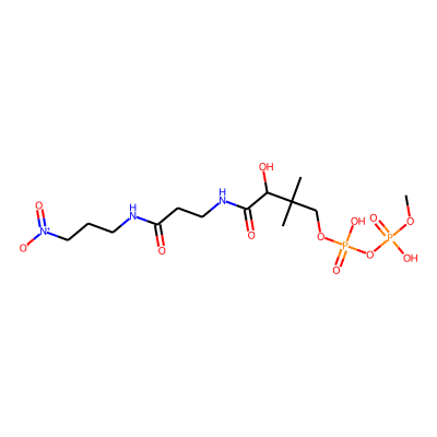 COP(=O)(O)OP(=O)(O)OCC(C)(C)C(O)C(=O)NCCC(=O)NCCC[N+](=O)[O-]| HBA: | 15 | RingCount: | 0 |