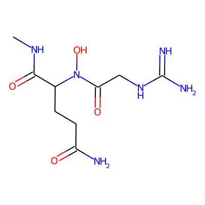 CNC(=O)C(CCC(N)=O)N(O)C(=O)CNC(=N)N| HBA: | 10 | RingCount: | 0 |