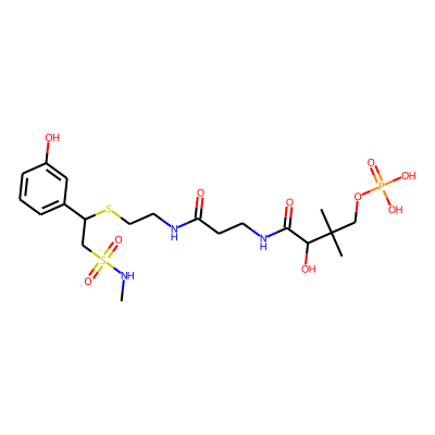 CNS(=O)(=O)CC(SCCNC(=O)CCNC(=O)C(O)C(C)(C)COP(=O)(O)O)c1cccc(O)c1| HBA: | 13 | RingCount: | 1 |