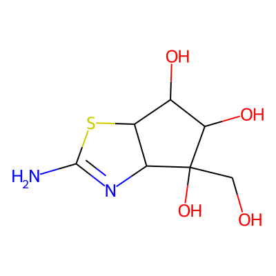 NC1=NC2C(S1)C(O)C(O)C2(O)CO| HBA: | 6 | RingCount: | 2 |