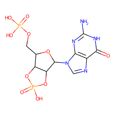 Nc1nc2c(ncn2C2OC(COP(=O)(O)O)C3OP(=O)(O)OC32)c(=O)[nH]1| HBA: | 15 | RingCount: | 4 |