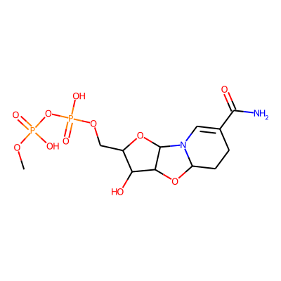 COP(=O)(O)OP(=O)(O)OCC1OC2C(OC3CCC(C(N)=O)=CN32)C1O| HBA: | 13 | RingCount: | 3 |
