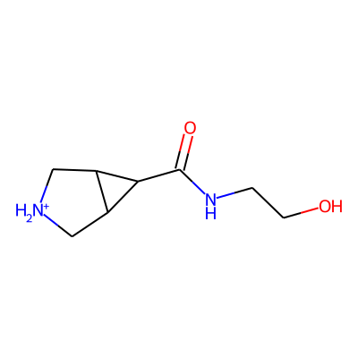 O=C(NCCO)C1C2C[NH2+]CC21| HBA: | 4 | RingCount: | 2 |