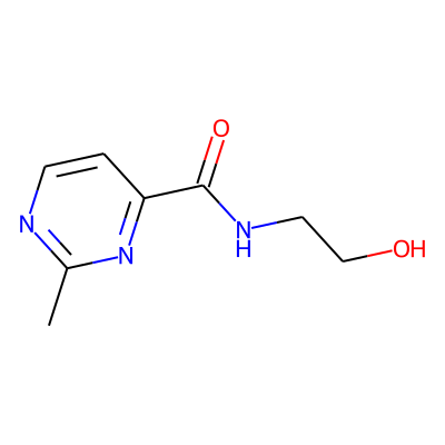 Cc1nccc(C(=O)NCCO)n1| HBA: | 5 | RingCount: | 1 |