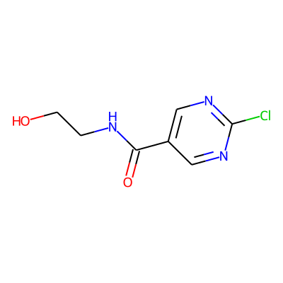 O=C(NCCO)c1cnc(Cl)nc1| HBA: | 5 | RingCount: | 1 |