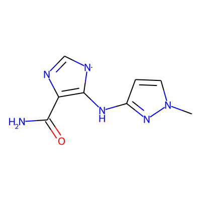 Cn1ccc(NC2=C(C(N)=O)N=C[N]2)n1| HBA: | 7 | RingCount: | 2 |