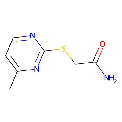 Cc1ccnc(SCC(N)=O)n1| HBA: | 4 | RingCount: | 1 |